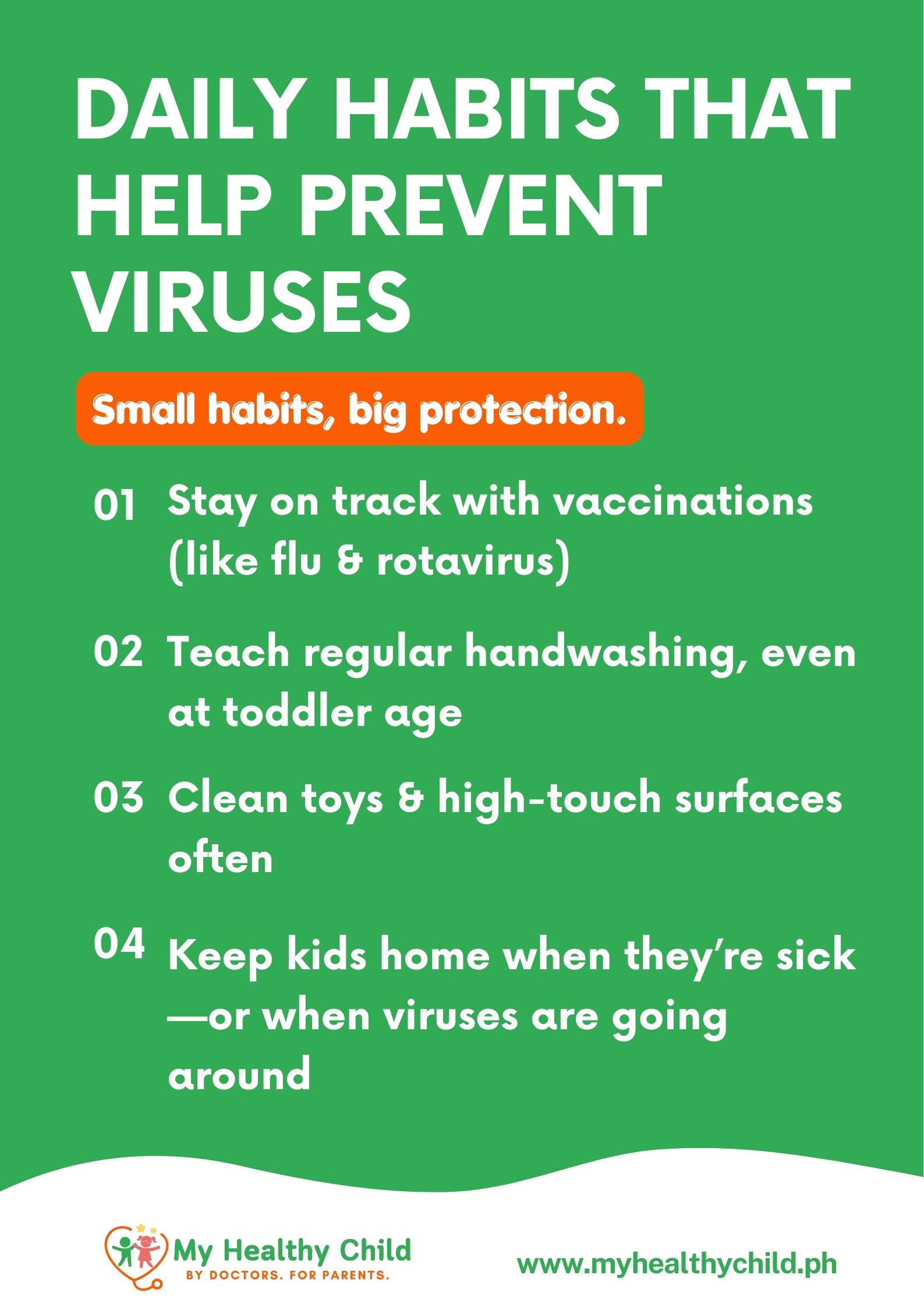 While you can’t shield your child from every virus, you can reduce their risk by building consistent protective habits:
